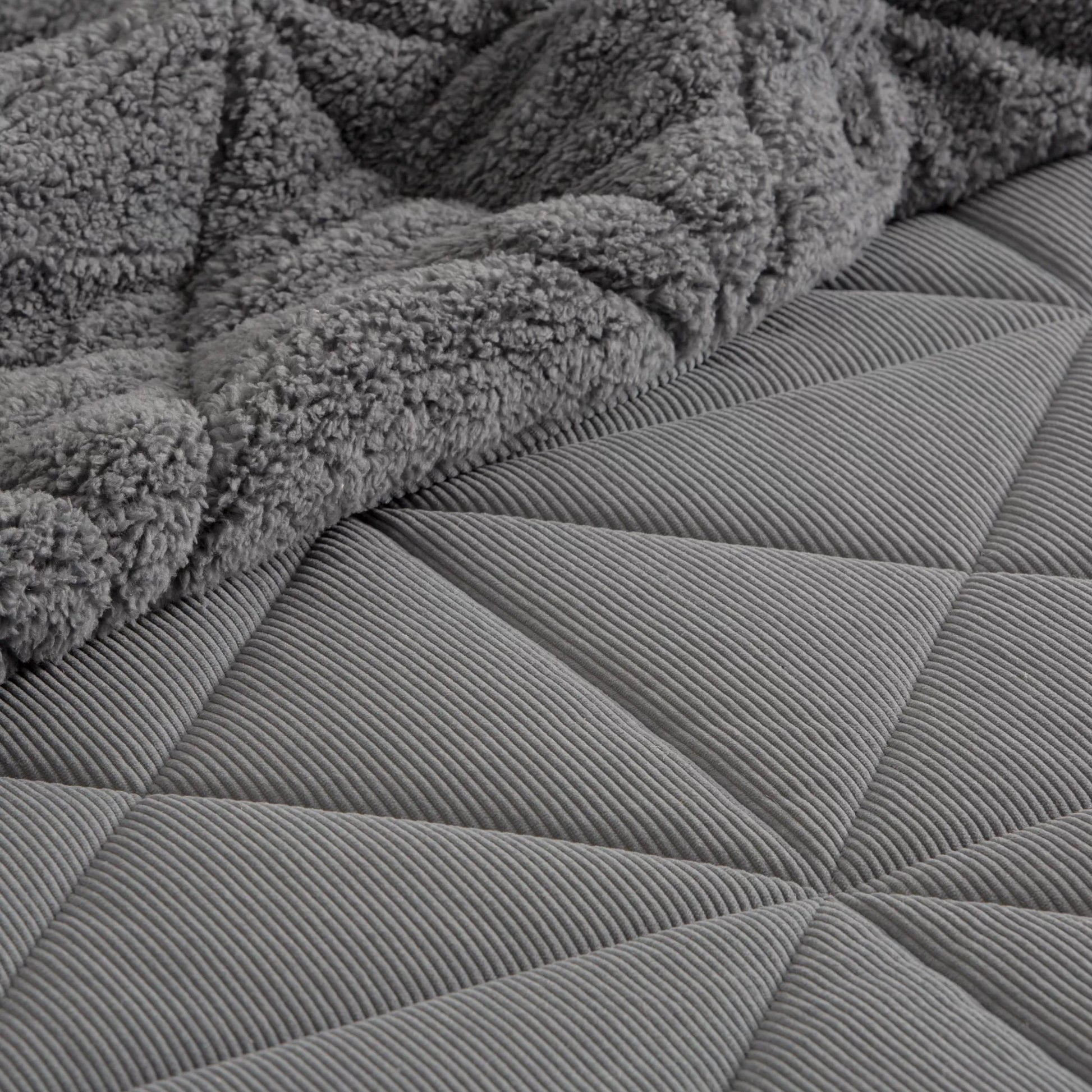 Dessin DÉGRADÉ (flou) avec relief jacquard sur une face et sherpa teinté au verso.